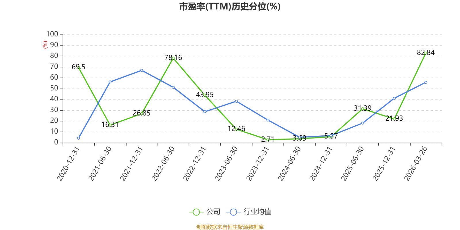 市盈率、市净率为负时,不显示当期分位数,会导致折线图中断。