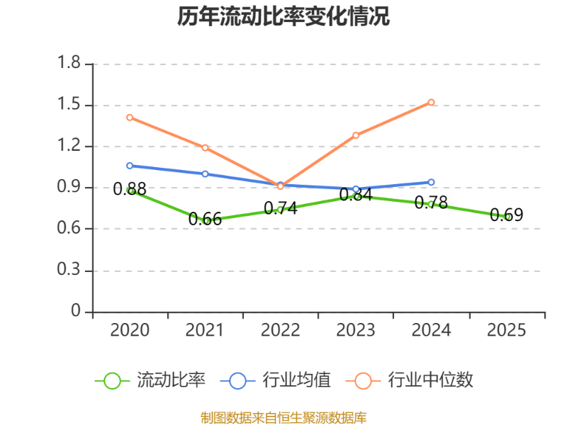 2025年,公司流动比率为0.69,速动比率为0.68。
