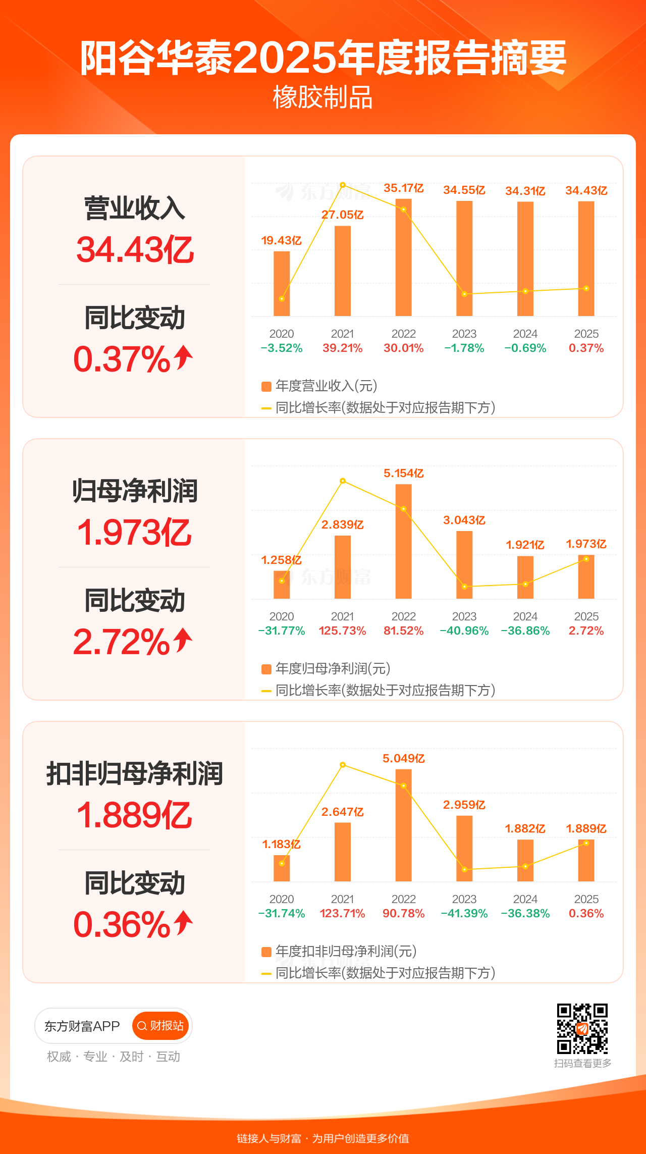 阳谷华泰3月27日发布2025年年报显示,公司全年实现营业收入34.43亿元,同比增长0.37%;归母净利润1.97亿元,同比增长2.72%;扣非归母净利润1.89亿元,同比增长0.36%。每股EPS0.45元,低于机构一致预测的0.60元。