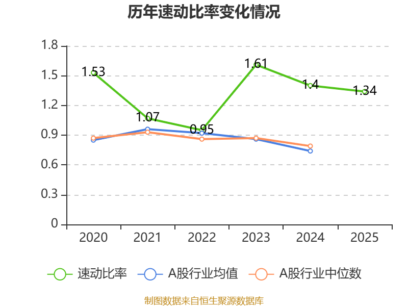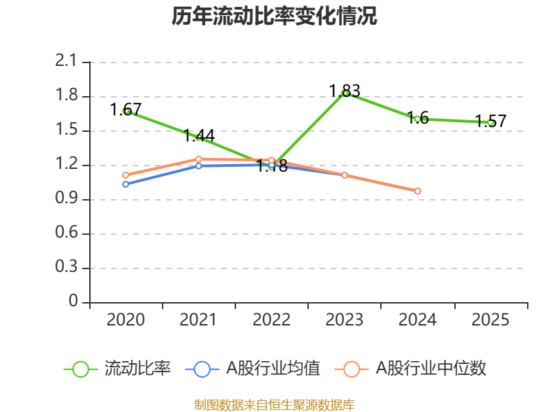 2025年,公司流动比率为1.57,速动比率为1.34。