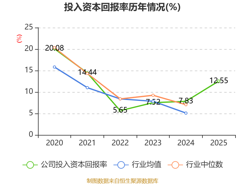 数据显示,2025年公司加权平均净资产收益率为15.64%,较上年同期上升6.02个百分点。公司2025年投入资本回报率为12.55%,较上年同期上升4.72个百分点。