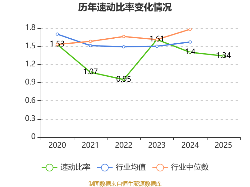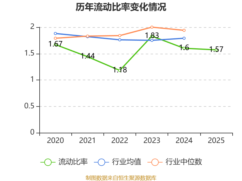2025年,公司流动比率为1.57,速动比率为1.34。