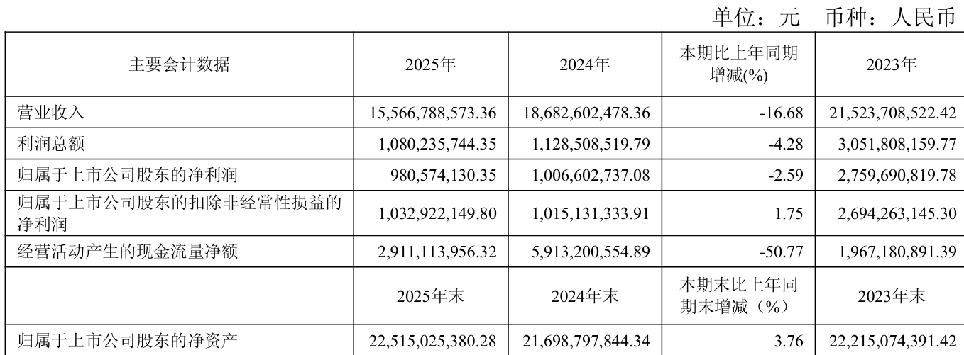 资产重大变化方面,截至2025年末,公司固定资产较上年末增加7.17%,占公司总资产比重上升3.26个百分点;货币资金较上年末减少24.18%,占公司总资产比重下降2.87个百分点;在建工程合计较上年末增加16.05%,占公司总资产比重上升1.2个百分点;其他非流动资产较上年末减少55.33%,占公司总资产比重下降1.12个百分点。