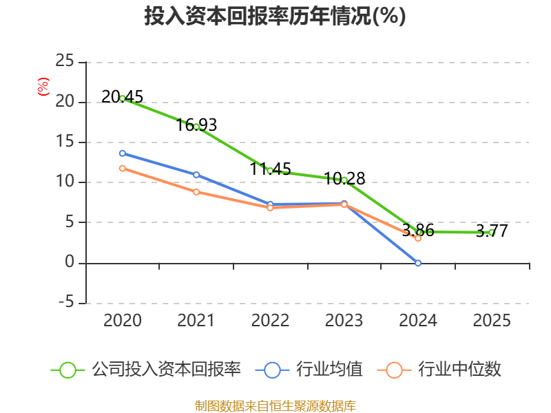 数据显示,2025年公司加权平均净资产收益率为4.44%,较上年同期下降0.11个百分点。公司2025年投入资本回报率为3.77%,较上年同期下降0.09个百分点。