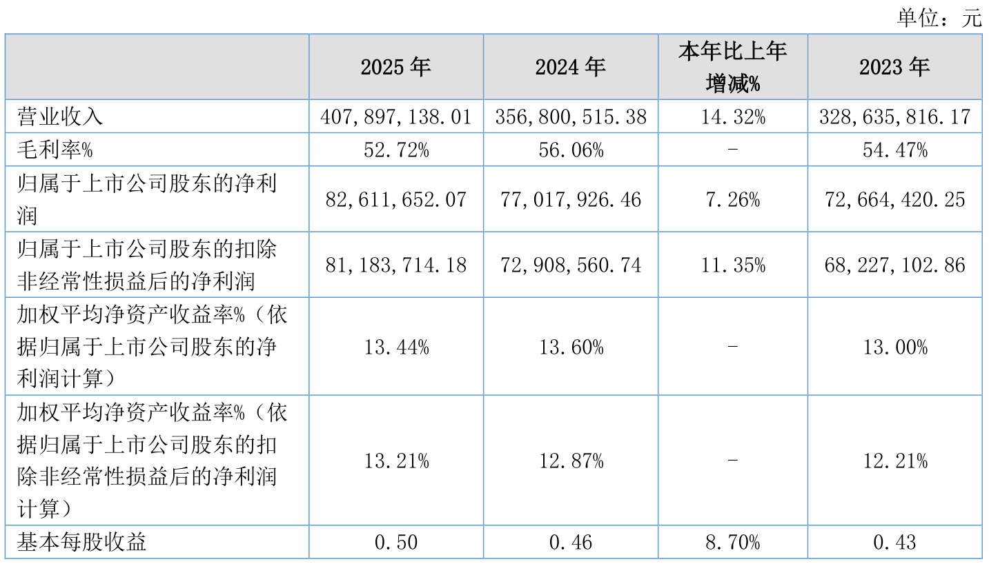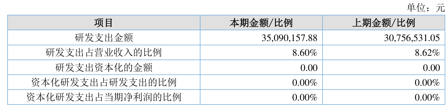 2025年全年,公司研发投入金额为3509.02万元,同比增长14.09%;研发投入占营业收入比例为8.6%,相比上年同期下降0.02个百分点。此外,公司全年研发投入资本化率为0%。