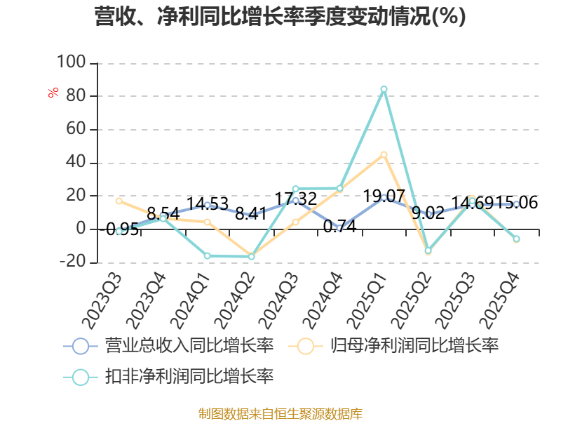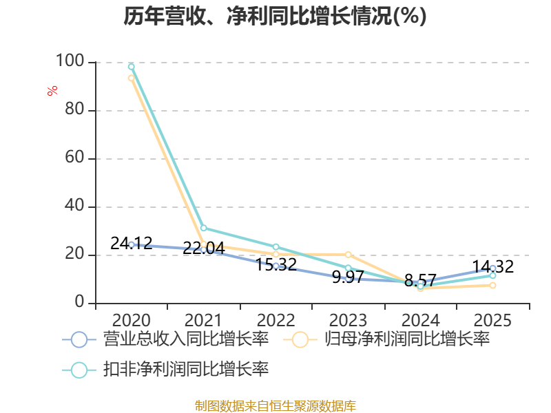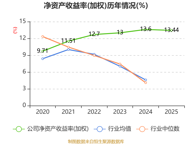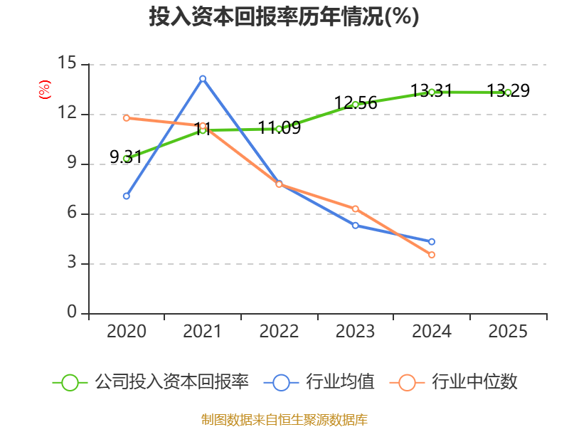 数据显示,2025年公司加权平均净资产收益率为13.44%,较上年同期下降0.16个百分点。公司2025年投入资本回报率为13.29%,较上年同期下降0.02个百分点。