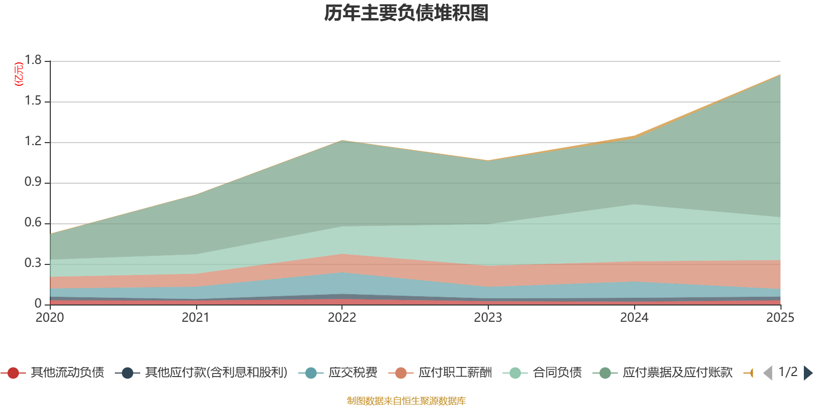 负债重大变化方面,截至2025年末,公司应付票据及应付账款较上年末增加116.23%,占公司总资产比重上升6.28个百分点;合同负债较上年末减少24.78%,占公司总资产比重下降1.91个百分点;应交税费较上年末减少53.59%,占公司总资产比重下降0.98个百分点;应付职工薪酬较上年末增加43.36%,占公司总资产比重上升0.59个百分点。