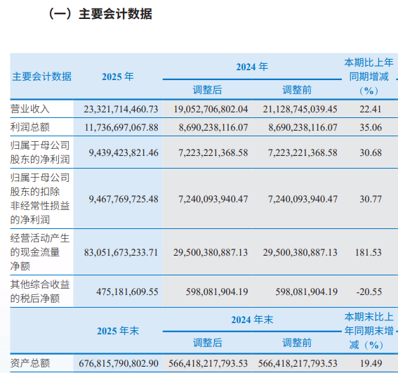 3月26日晚间,中信建投发布的《2025年年度报告》显示,报告期内,公司实现营业收入233.22亿元,同比增加22.41%;实现归属于母公司股东的净利润(下称“净利润”)94.39亿元,同比增长30.68%。