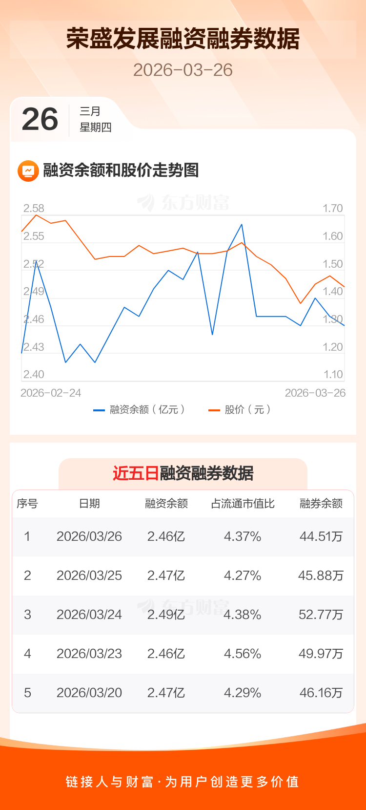 交易所最新数据显示,荣盛发展于2026年3月26日获融资买入959.24万元,融资偿还1066.73万元,当日融资净偿还107.49万元。目前,该股融资余额2.46亿,占流通市值比例为4.37%。