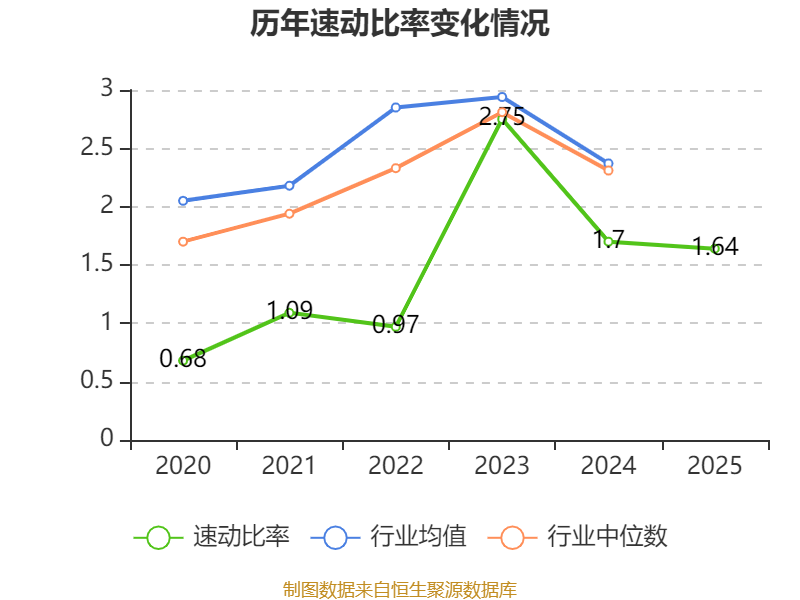 2025年,公司流动比率为2.37,速动比率为1.64。