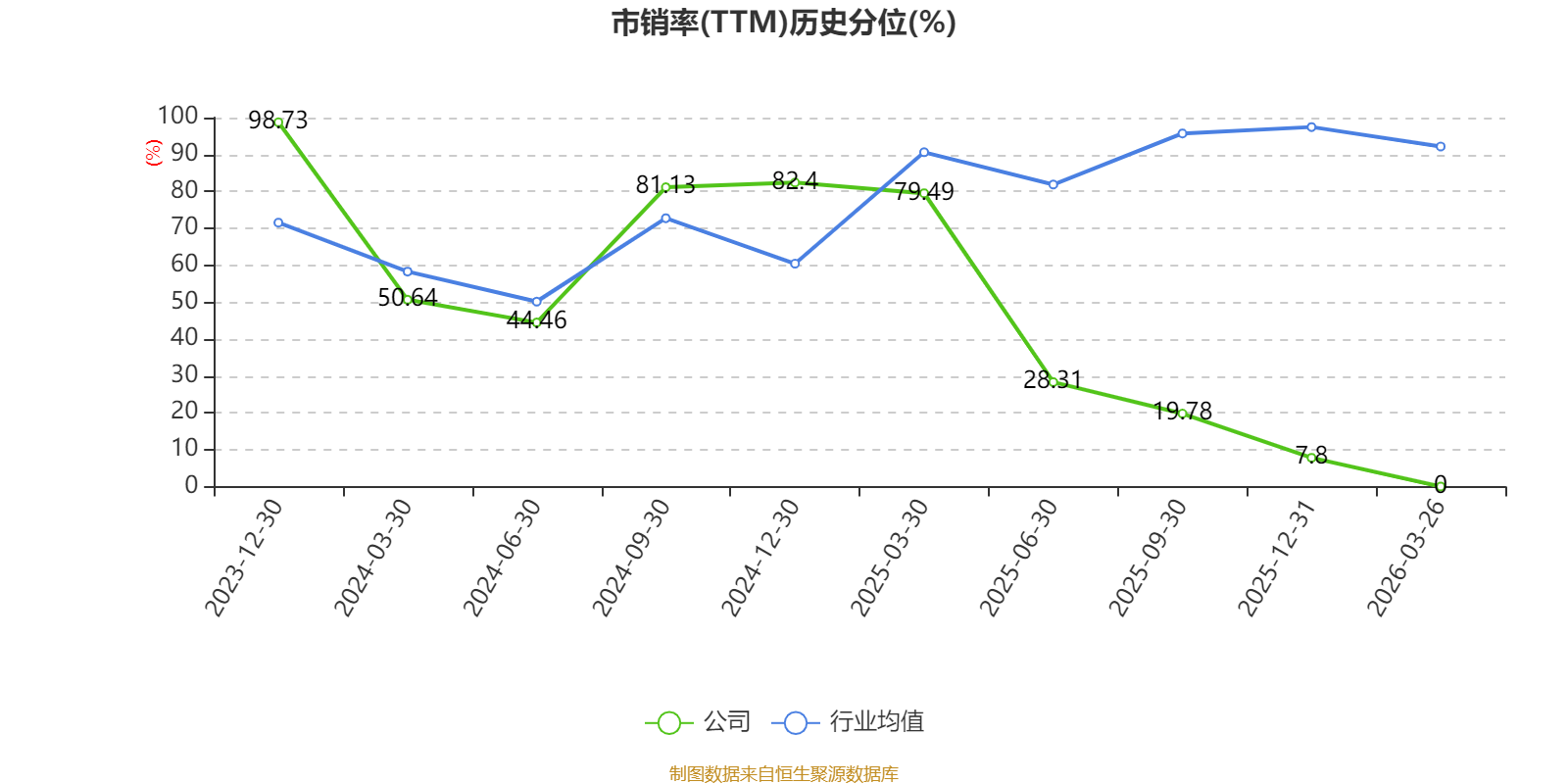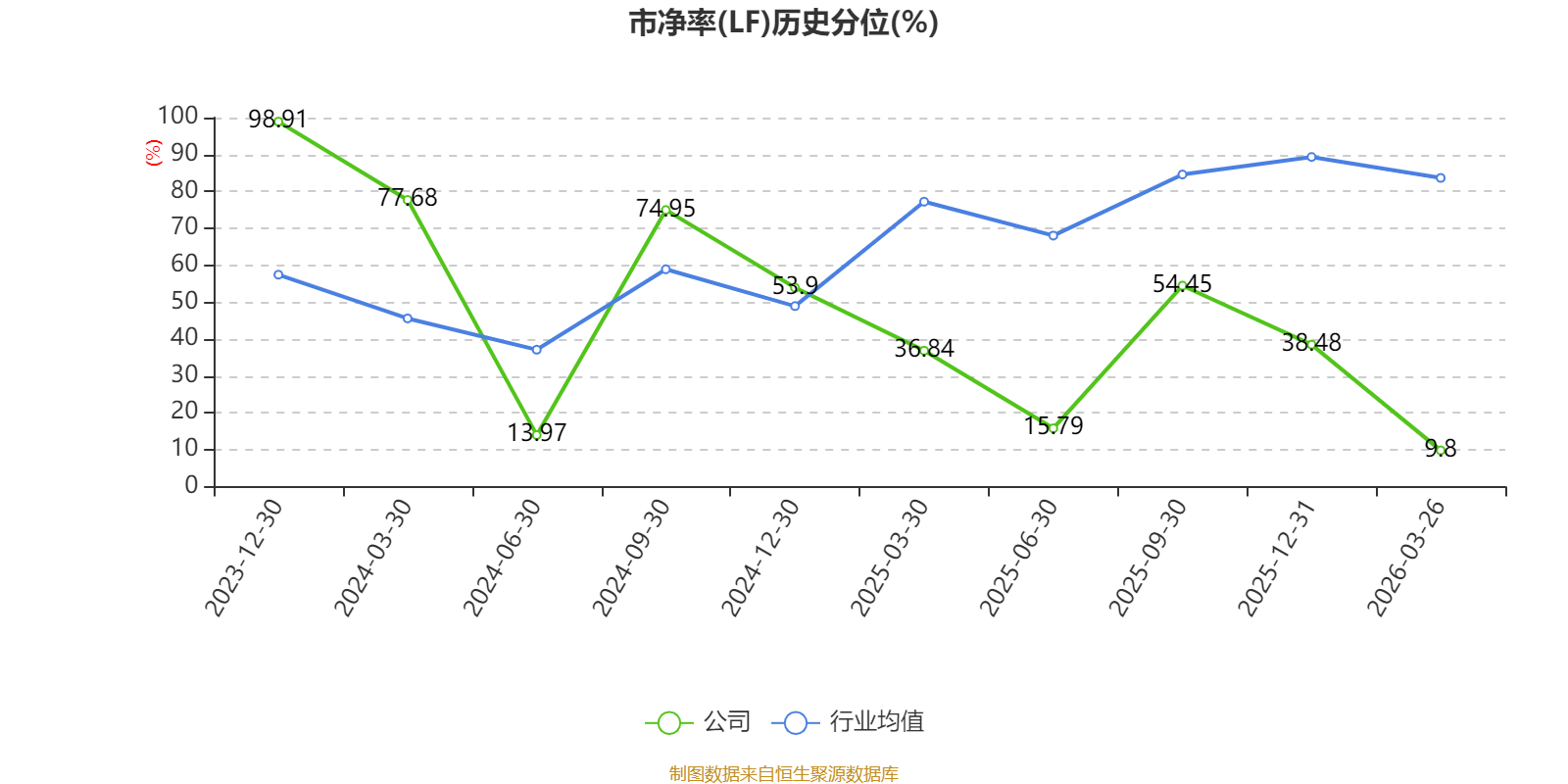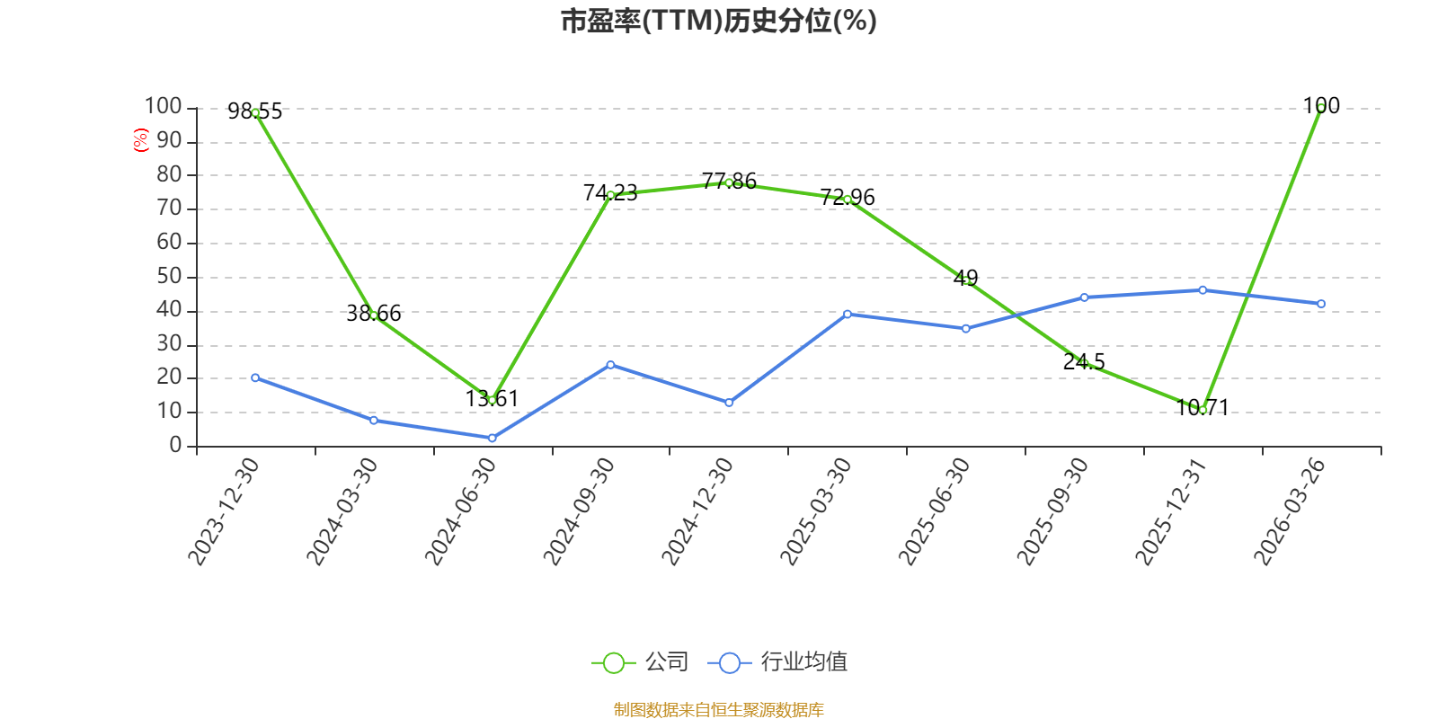 市盈率、市净率为负时,不显示当期分位数,会导致折线图中断。
