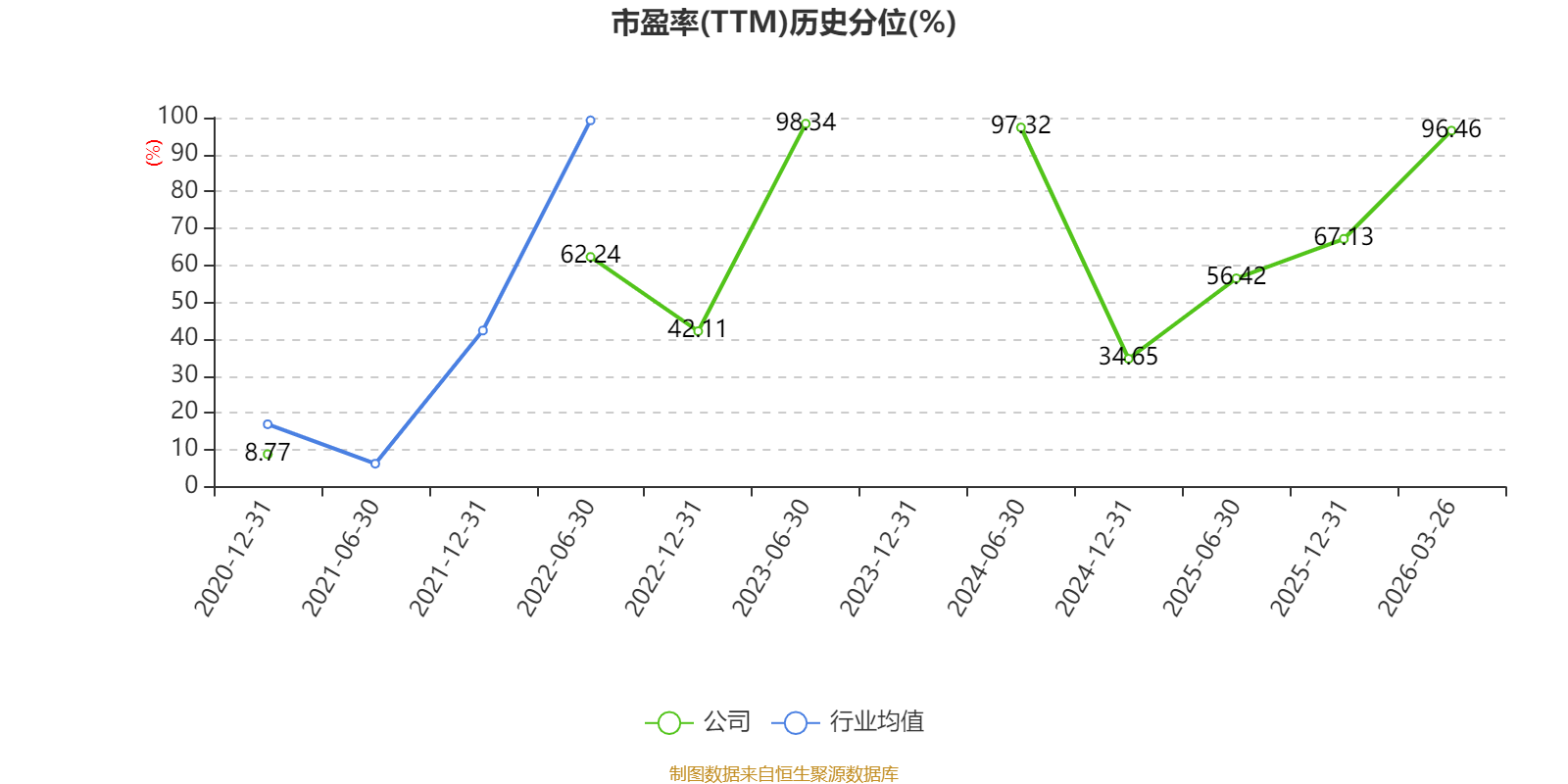 市盈率、市净率为负时,不显示当期分位数,会导致折线图中断。