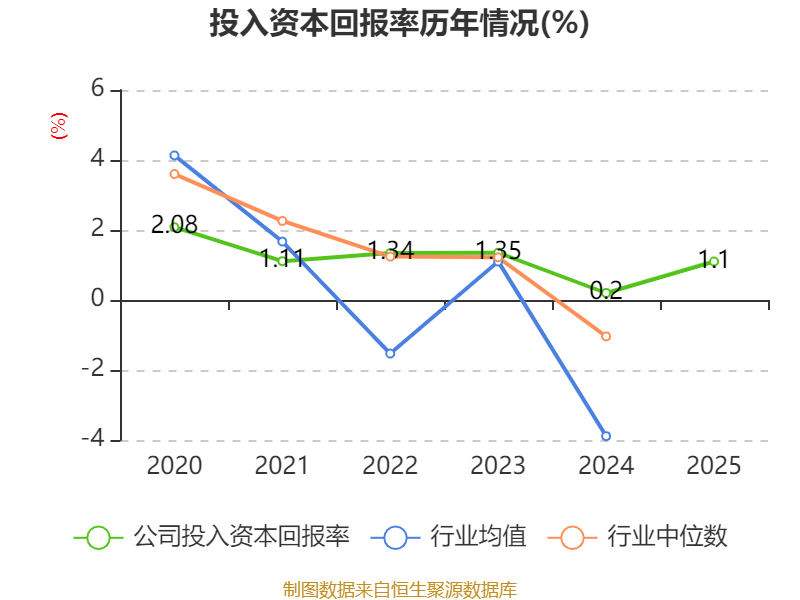数据显示,2025年公司加权平均净资产收益率为0.35%,较上年同期上升0.04个百分点。公司2025年投入资本回报率为1.1%,较上年同期上升0.9个百分点。