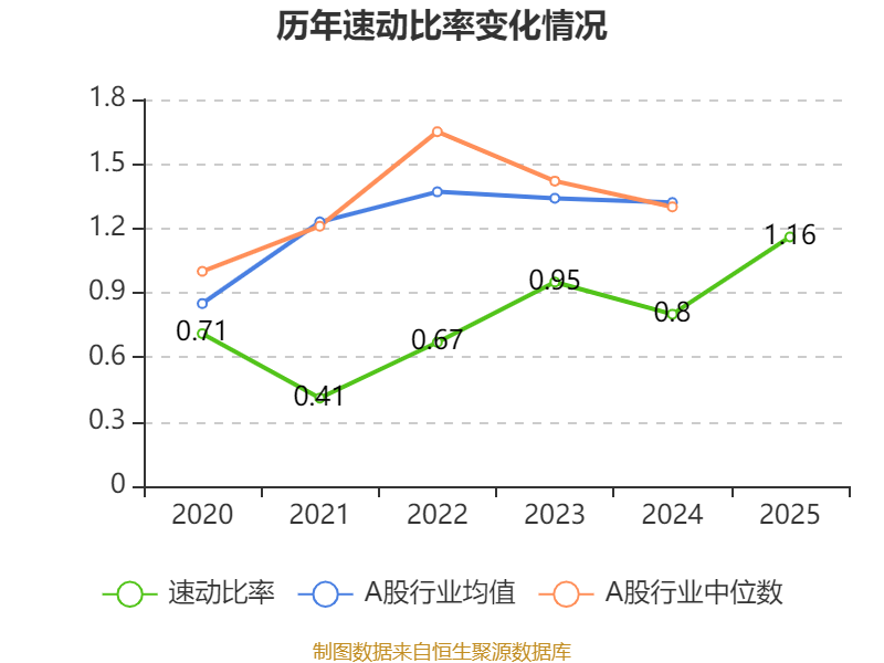 2025年,公司流动比率为1.22,速动比率为1.16。