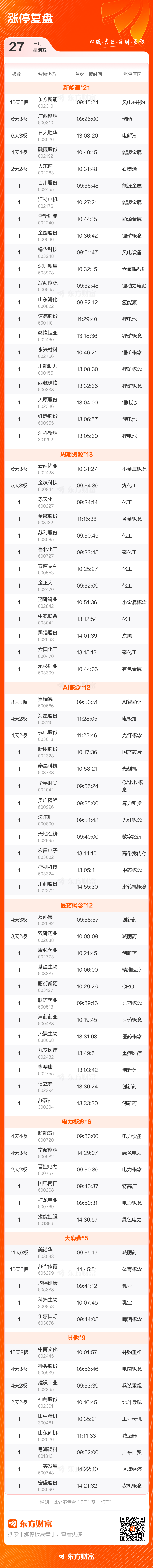 3月27日涨停复盘:93只股涨停 东方新能10天5板