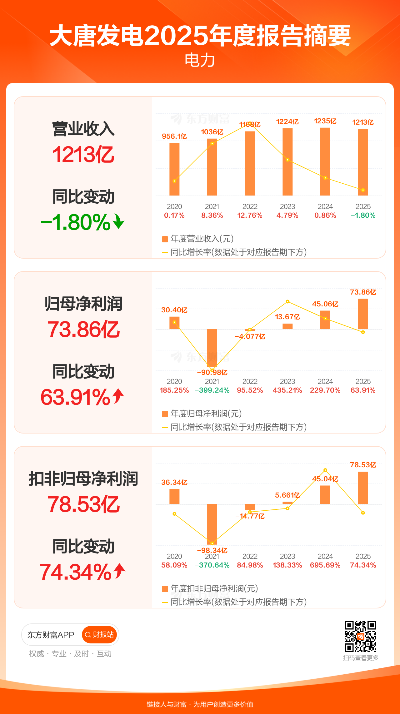 图解财报:大唐发电全年归母净利润73.86亿元,同比增长63.91%