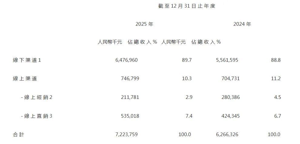 2025年,公司线下收入64.77亿元,同比增长16.5%,占总营收的89.7%,主要得益于零食量贩等新兴渠道的加速渗透。相比之下,线上渠道发展滞后,仅贡献约一成业绩,期内收入7.47亿元,同比增长6%。