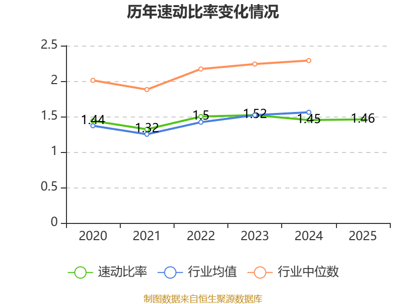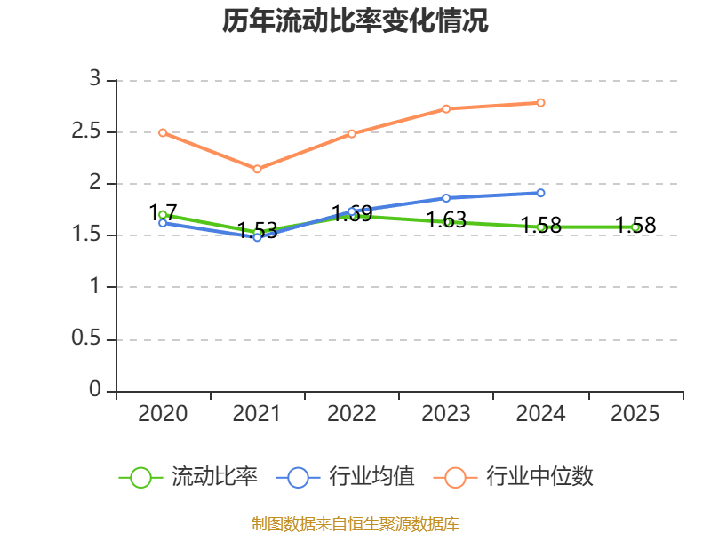 2025年,公司流动比率为1.58,速动比率为1.46。