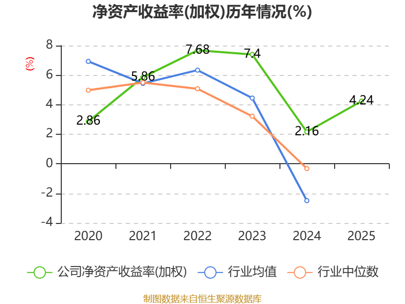 数据显示,2025年公司加权平均净资产收益率为4.24%,较上年同期上升2.08个百分点。公司2025年投入资本回报率为2.96%,较上年同期上升1个百分点。