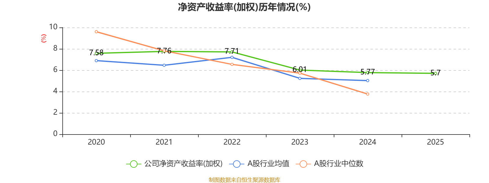 数据显示,2025年公司平均净资产收益率为5.7%,较上年同期下降0.07个百分点。