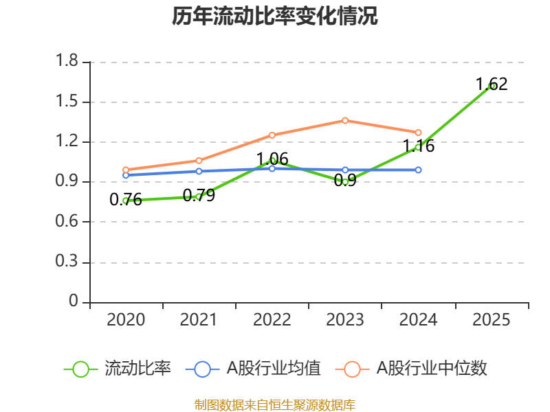 2025年,公司流动比率为1.62,速动比率为1.58。