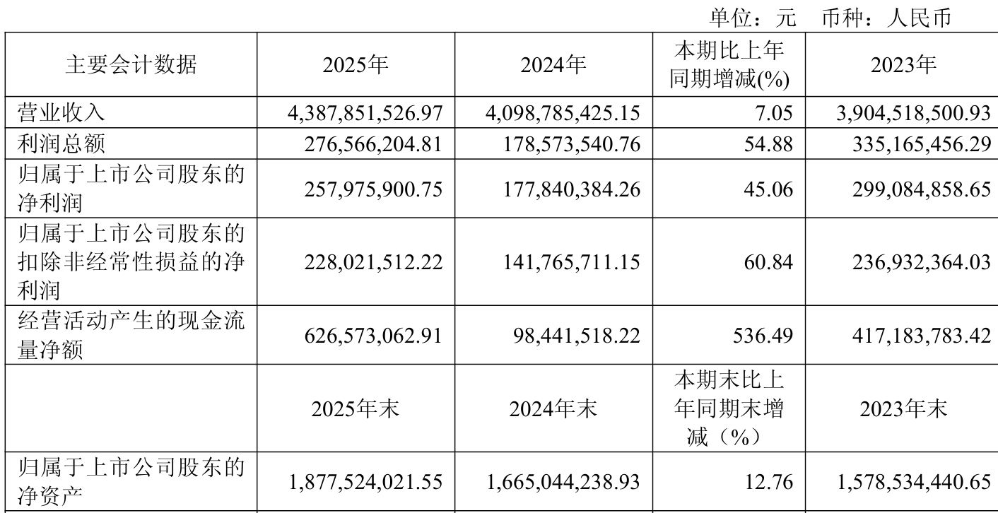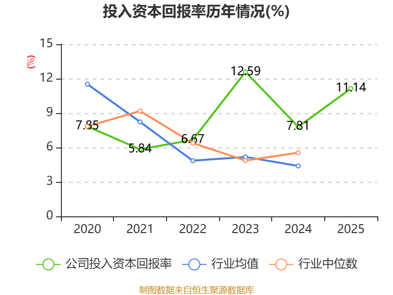 数据显示,2025年公司加权平均净资产收益率为14.49%,较上年同期上升3.53个百分点。公司2025年投入资本回报率为11.14%,较上年同期上升3.33个百分点。