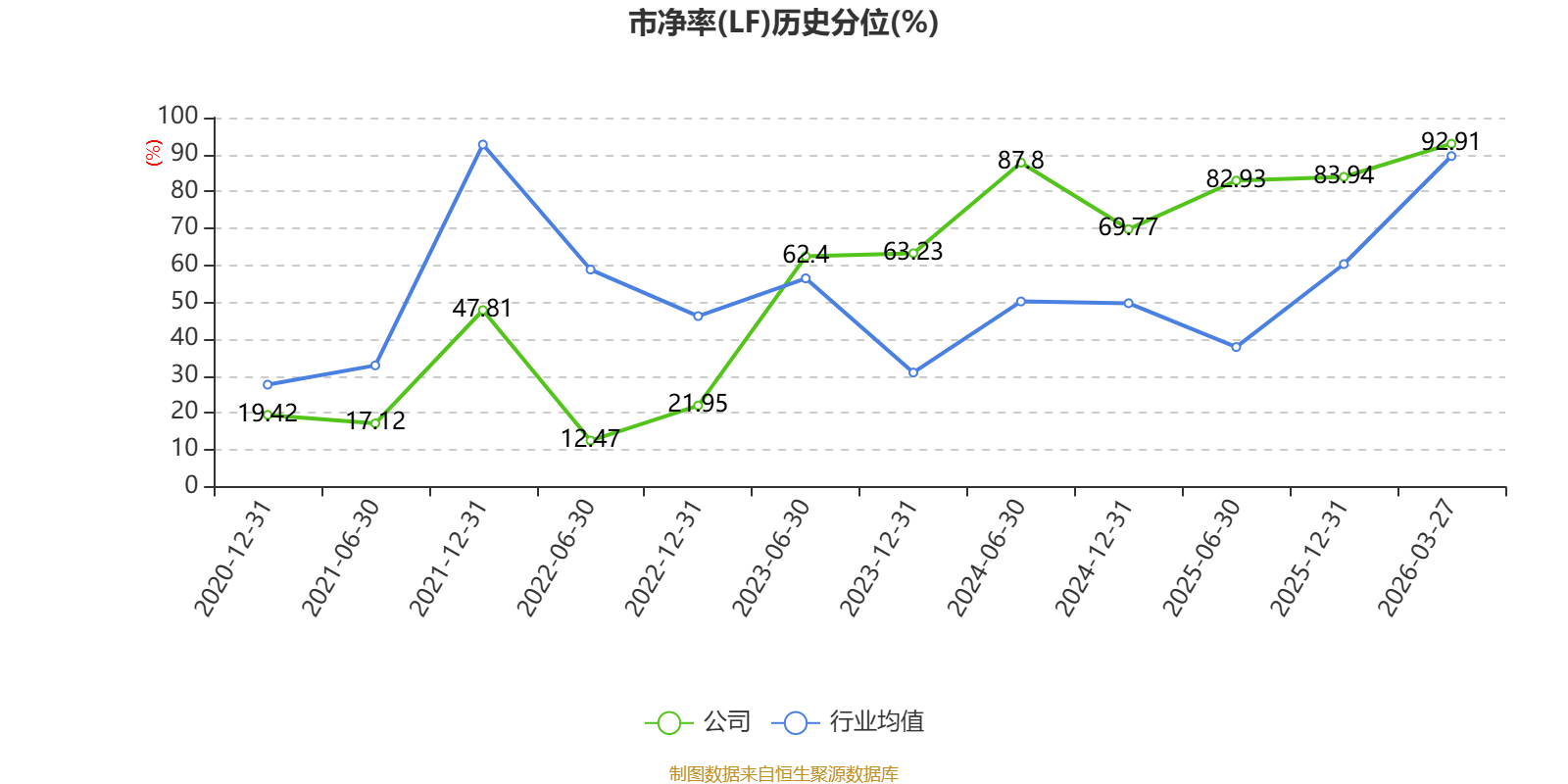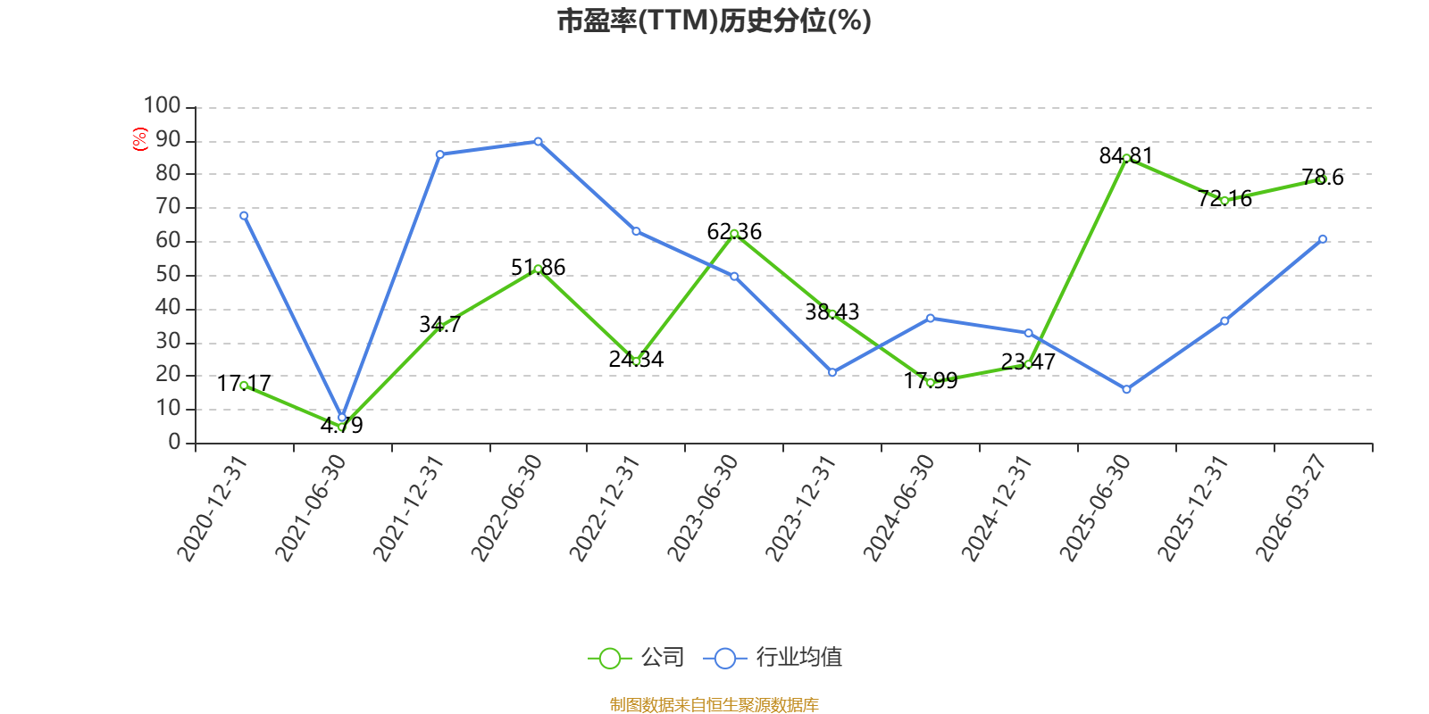 市盈率、市净率为负时,不显示当期分位数,会导致折线图中断。