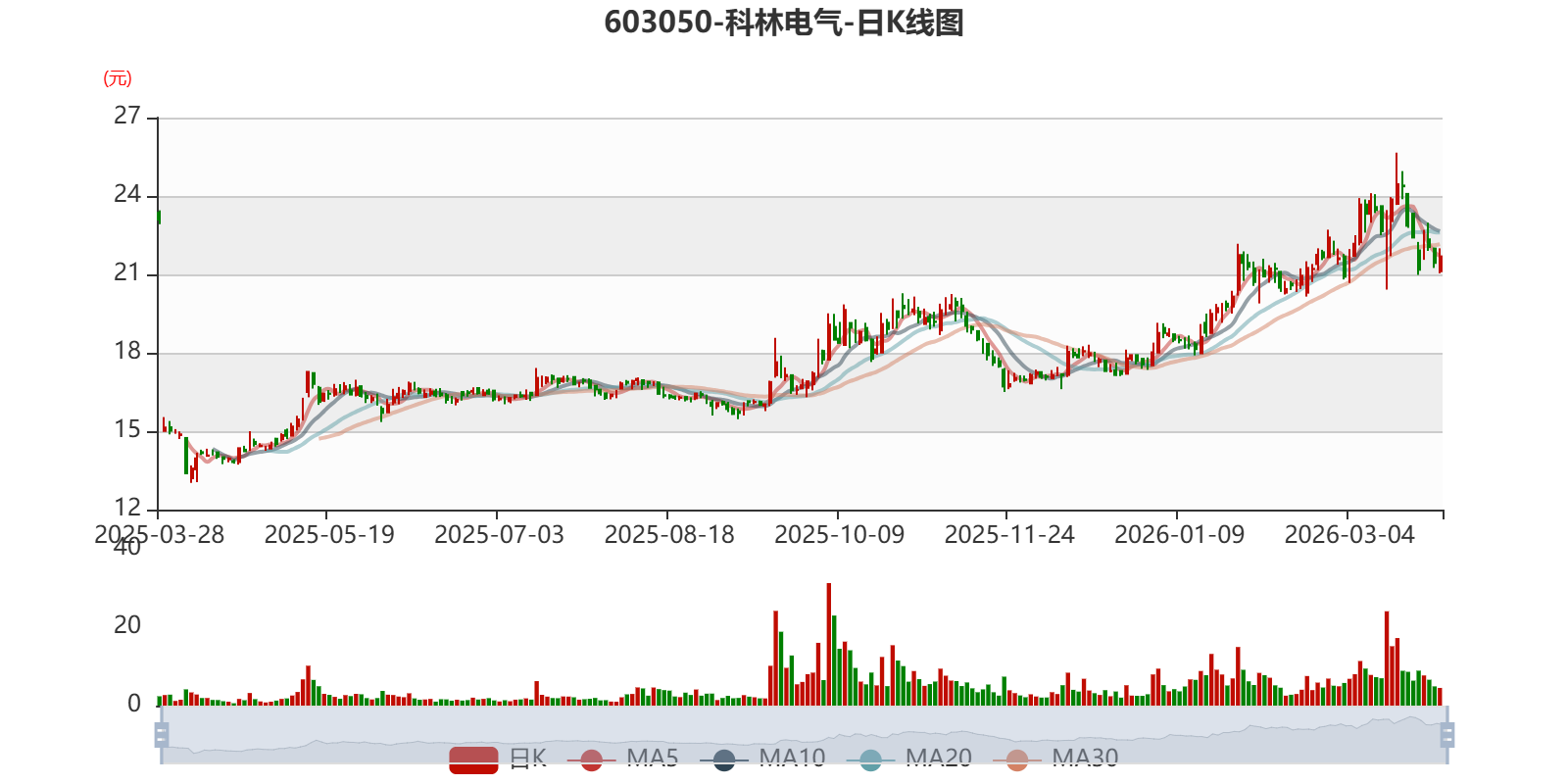 以3月27日收盘价计算,科林电气目前市盈率(TTM)约为33.91倍,市净率(LF)约4.66倍,市销率(TTM)约1.99倍。