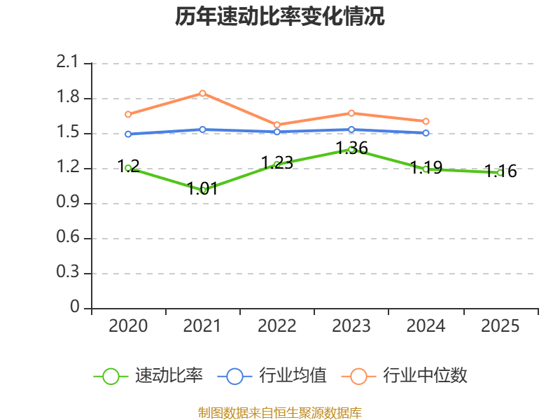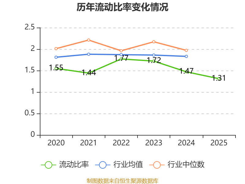2025年,公司流动比率为1.31,速动比率为1.16。