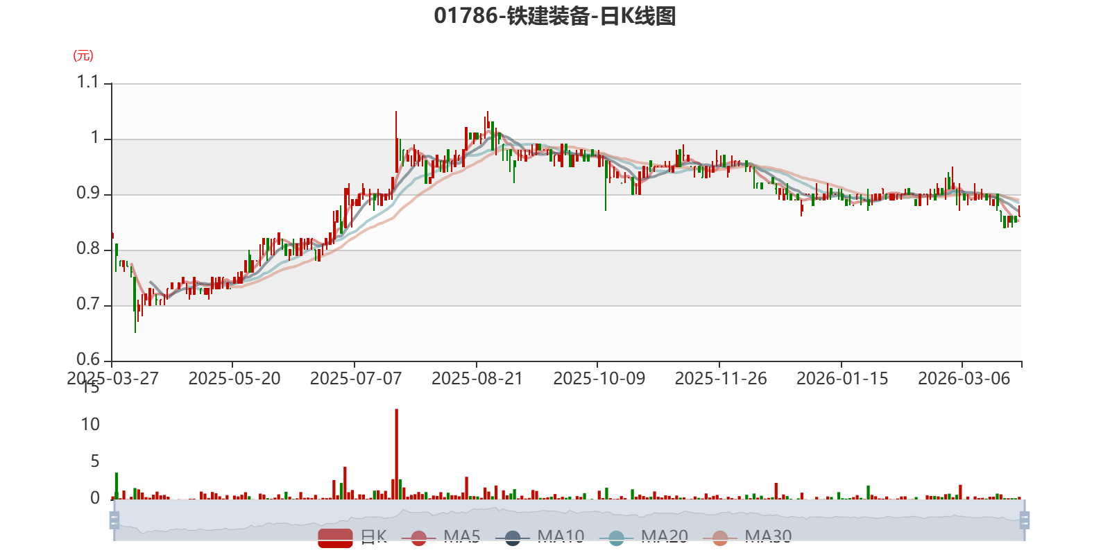 以3月27日收盘价计算,铁建装备目前市盈率(TTM)约8.2倍,市净率(TTM)约0.2倍,市销率(TTM)约0.34倍。