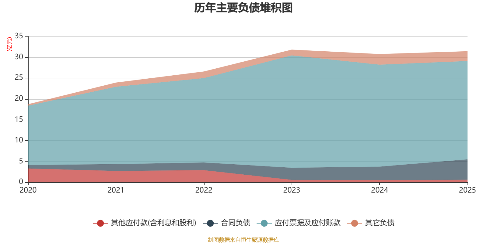 负债重大变化方面,截至2025年末,公司合同负债较上期末增加51.87%,占公司总资产比重上升1.71个百分点;应付票据及应付账款较上期末减少3.58%,占公司总资产比重下降1.52个百分点;一年内到期的非流动负债较上期末减少30.9%,占公司总资产比重下降0.16个百分点;应交税费较上期末减少8.64%,占公司总资产比重下降0.11个百分点。