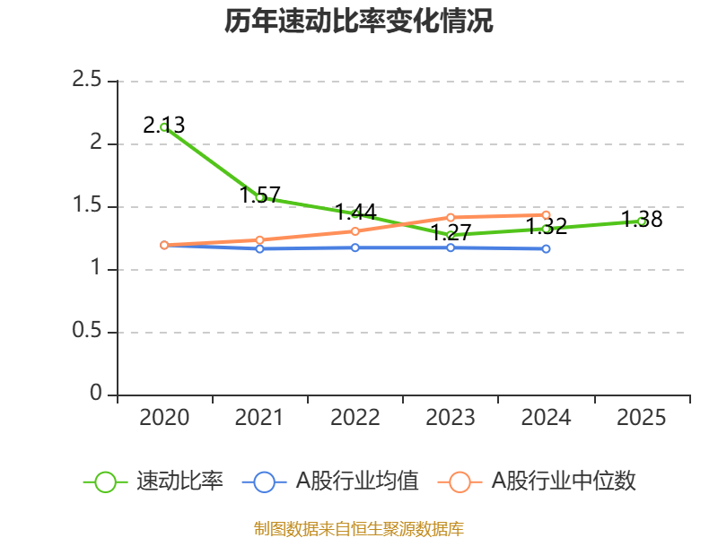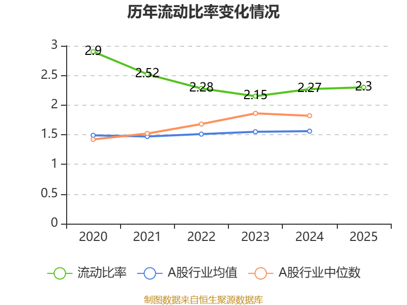 2025年,公司流动比率为2.30,速动比率为1.38。