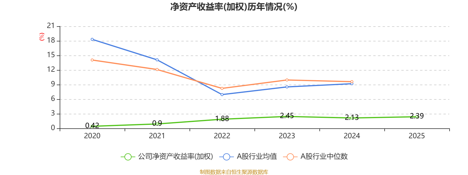数据显示,2025年公司平均净资产收益率为2.39%,较上年同期上升0.26个百分点。