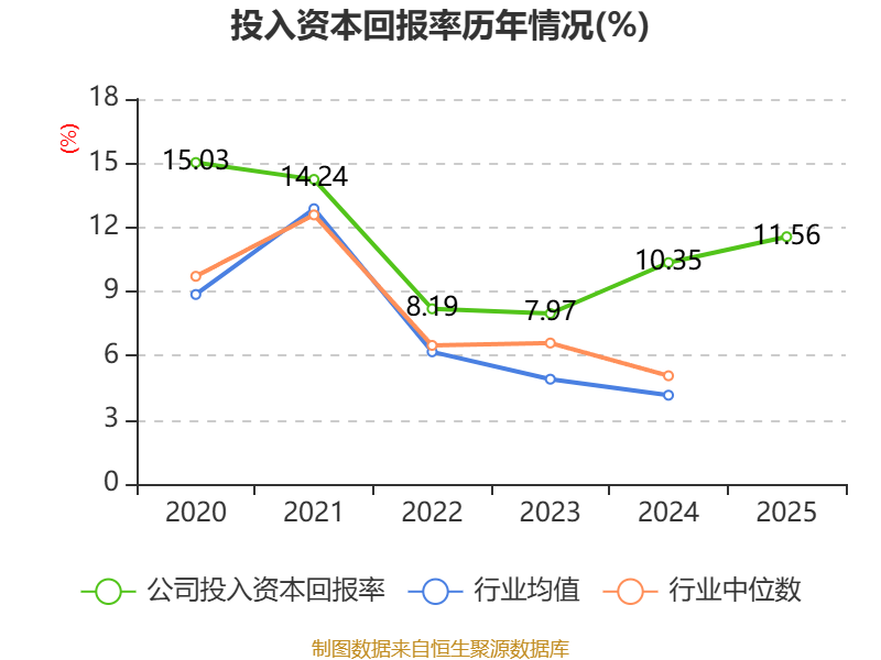 数据显示,2025年公司加权平均净资产收益率为12.62%,较上年同期上升1.12个百分点。公司2025年投入资本回报率为11.56%,较上年同期上升1.21个百分点。