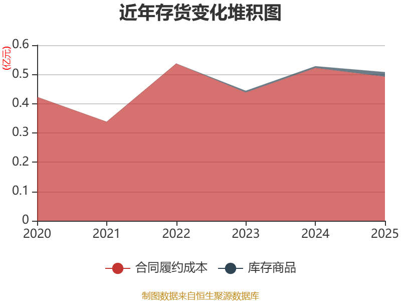 从存货变动来看,截至2025年末,公司存货账面价值为5080.28万元,占净资产的2.75%,较上年末减少206.9万元。其中,存货跌价准备为486.49万元,计提比例为8.74%。