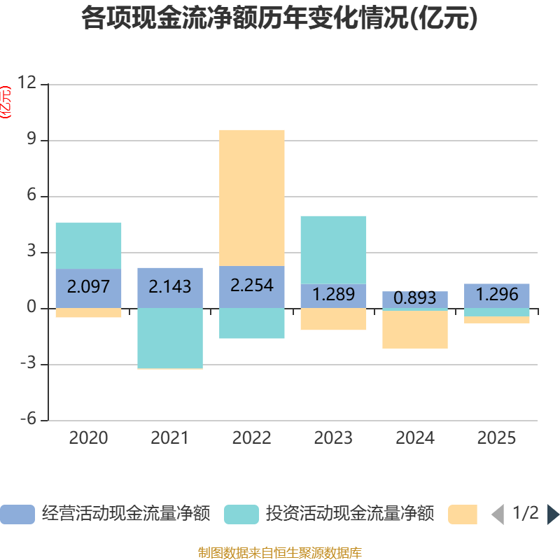 截至2025年,公司经营活动现金流净额为1.3亿元,同比增长45.21%;筹资活动现金流净额-3702.66万元,同比增加1.65亿元;投资活动现金流净额-4532.7万元,上年同期为-1535.64万元。