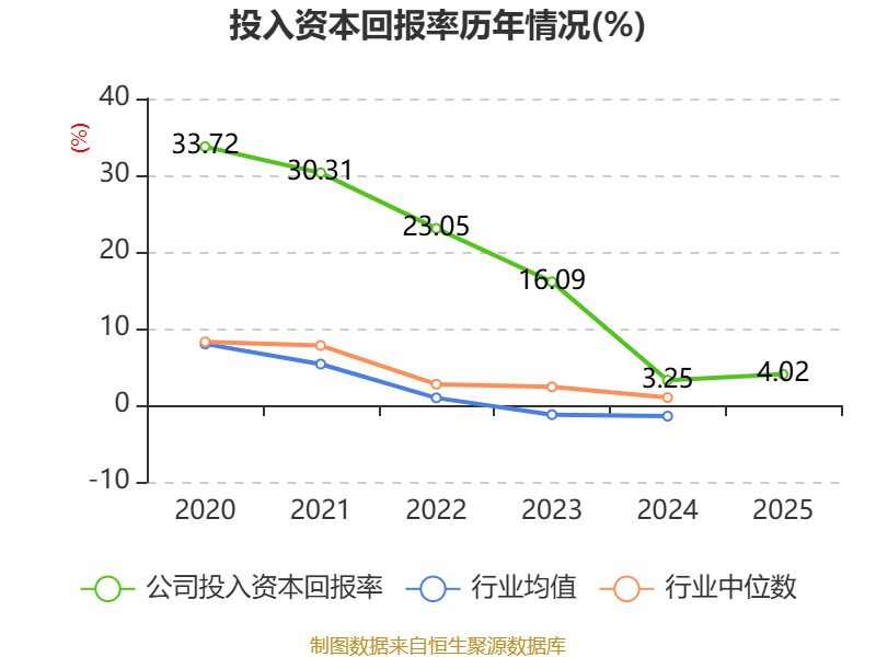 数据显示,2025年公司加权平均净资产收益率为5.59%,较上年同期下降0.39个百分点。公司2025年投入资本回报率为4.02%,较上年同期上升0.77个百分点。