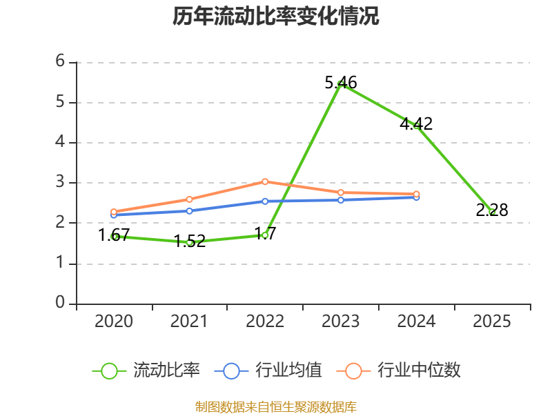 2025年,公司流动比率为2.28,速动比率为1.79。