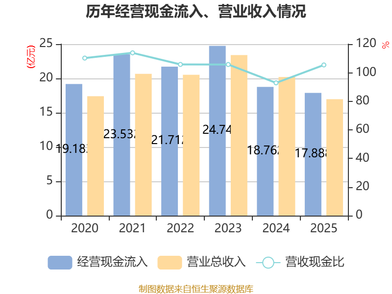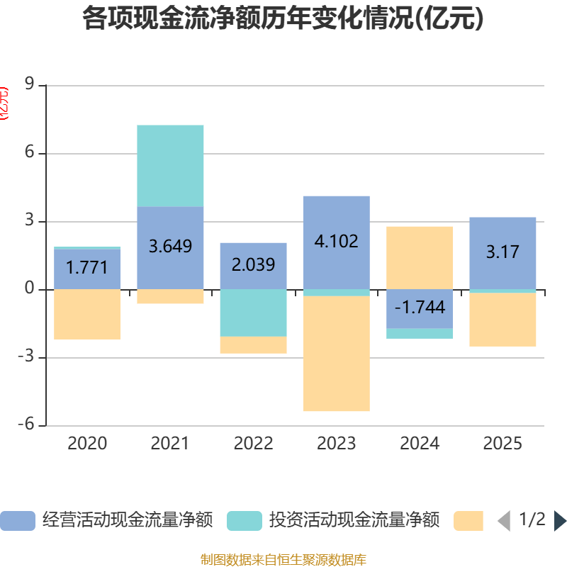 截至2025年,公司经营活动现金流净额为3.17亿元,同比增加4.91亿元;筹资活动现金流净额-2.36亿元,同比减少5.11亿元;投资活动现金流净额-1725.53万元,上年同期为-4395.87万元。
