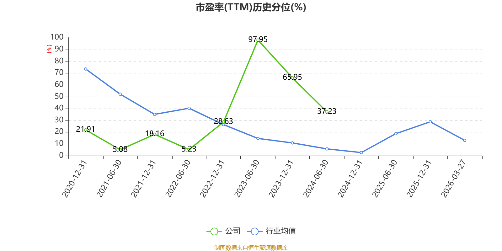 市盈率、市净率为负时,不显示当期分位数,会导致折线图中断。