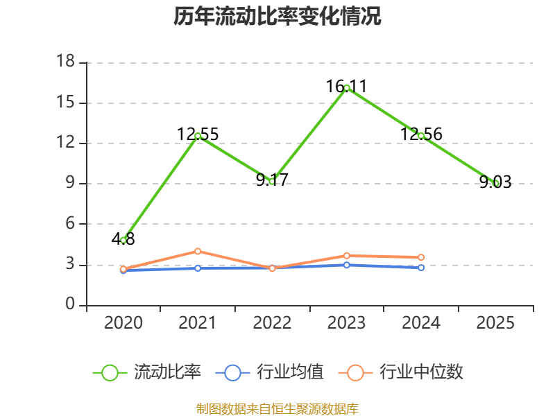 2025年,公司流动比率为9.03,速动比率为8.27。