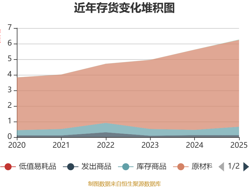 从存货变动来看,截至2025年末,公司存货账面价值为6.26亿元,占净资产的7.16%,较上年末增加6464.59万元。公司本期没有计提存货跌价准备。