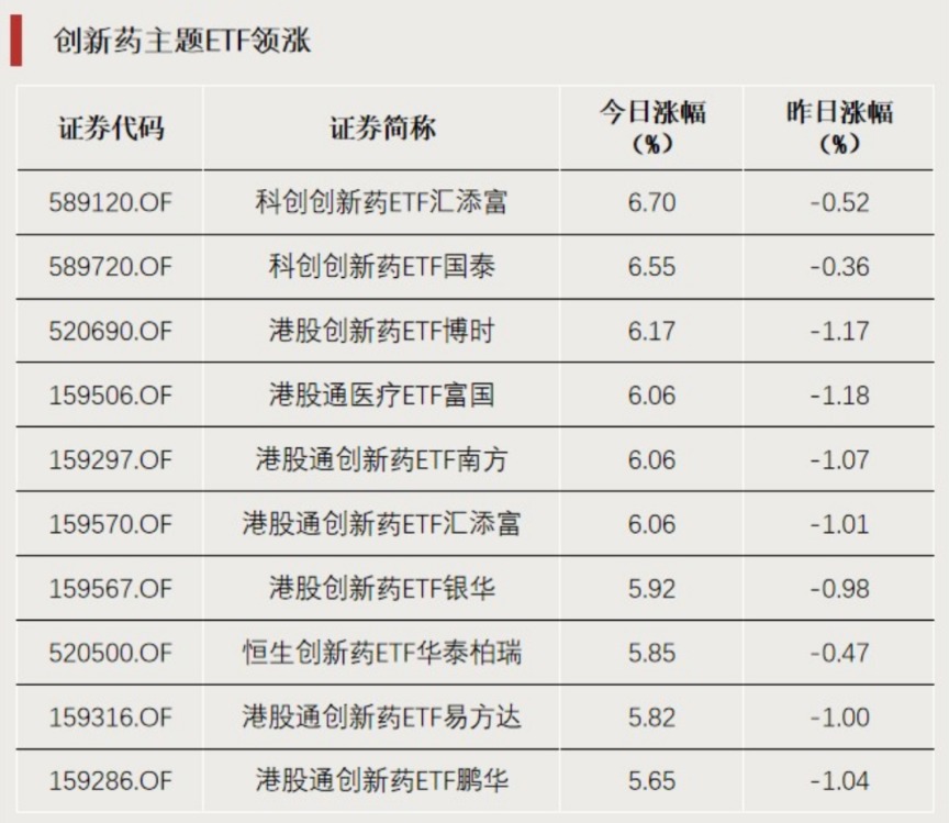 3月27日,医药板块全面上涨,A股和港股创新药主题ETF迎来强势反弹,多只产品涨幅超过5%。其中,科创创新药ETF汇添富领涨全市场,涨幅达6.7%。同时,港股医疗、恒生生物科技等相关主题ETF普涨,多只产品涨幅超过4%。