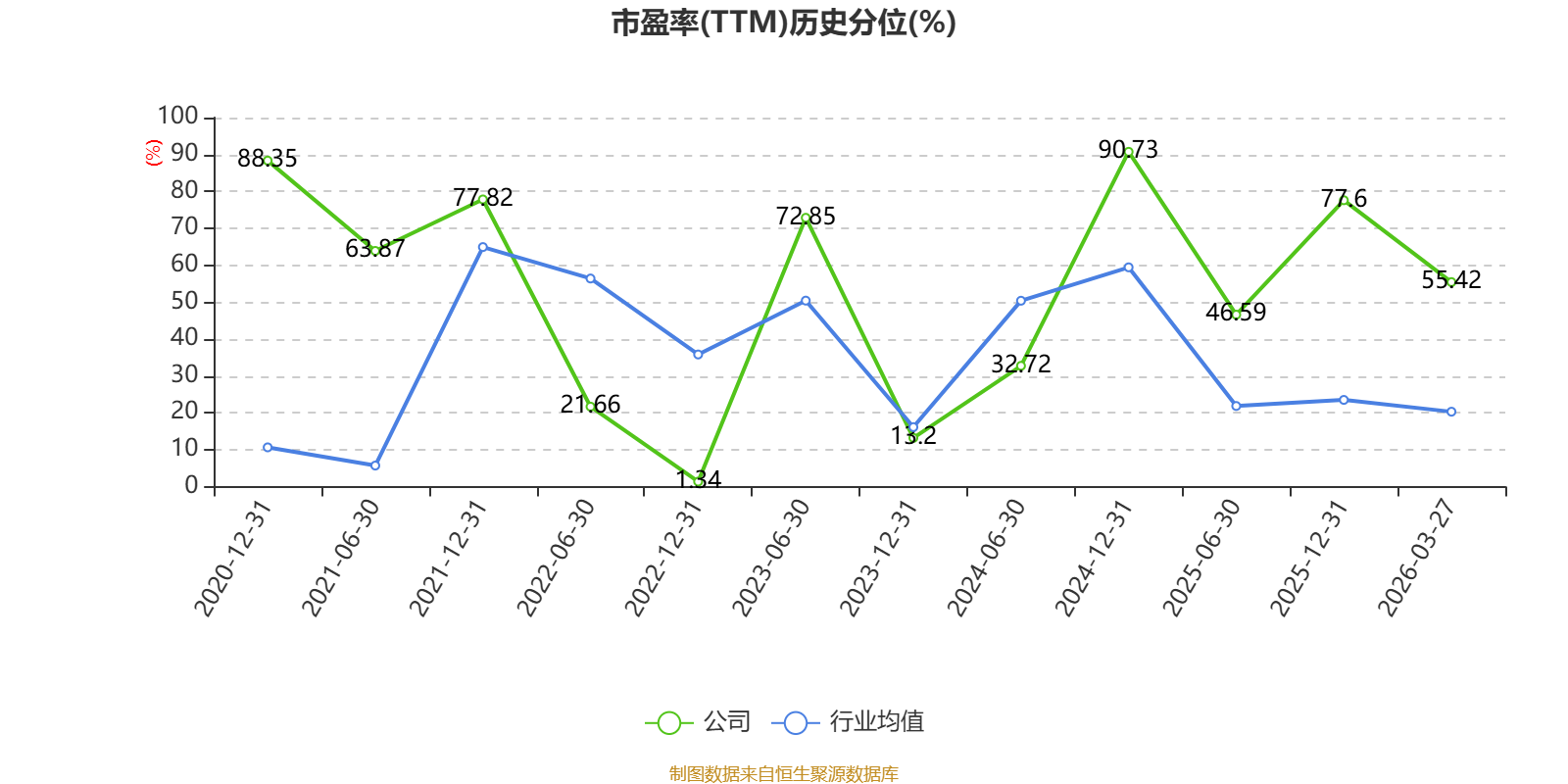 市盈率、市净率为负时,不显示当期分位数,会导致折线图中断。