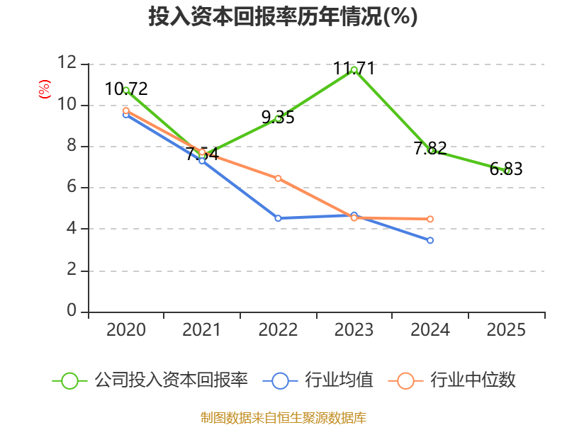 数据显示,2025年公司加权平均净资产收益率为5.92%,较上年同期下降1.77个百分点。公司2025年投入资本回报率为6.83%,较上年同期下降0.99个百分点。