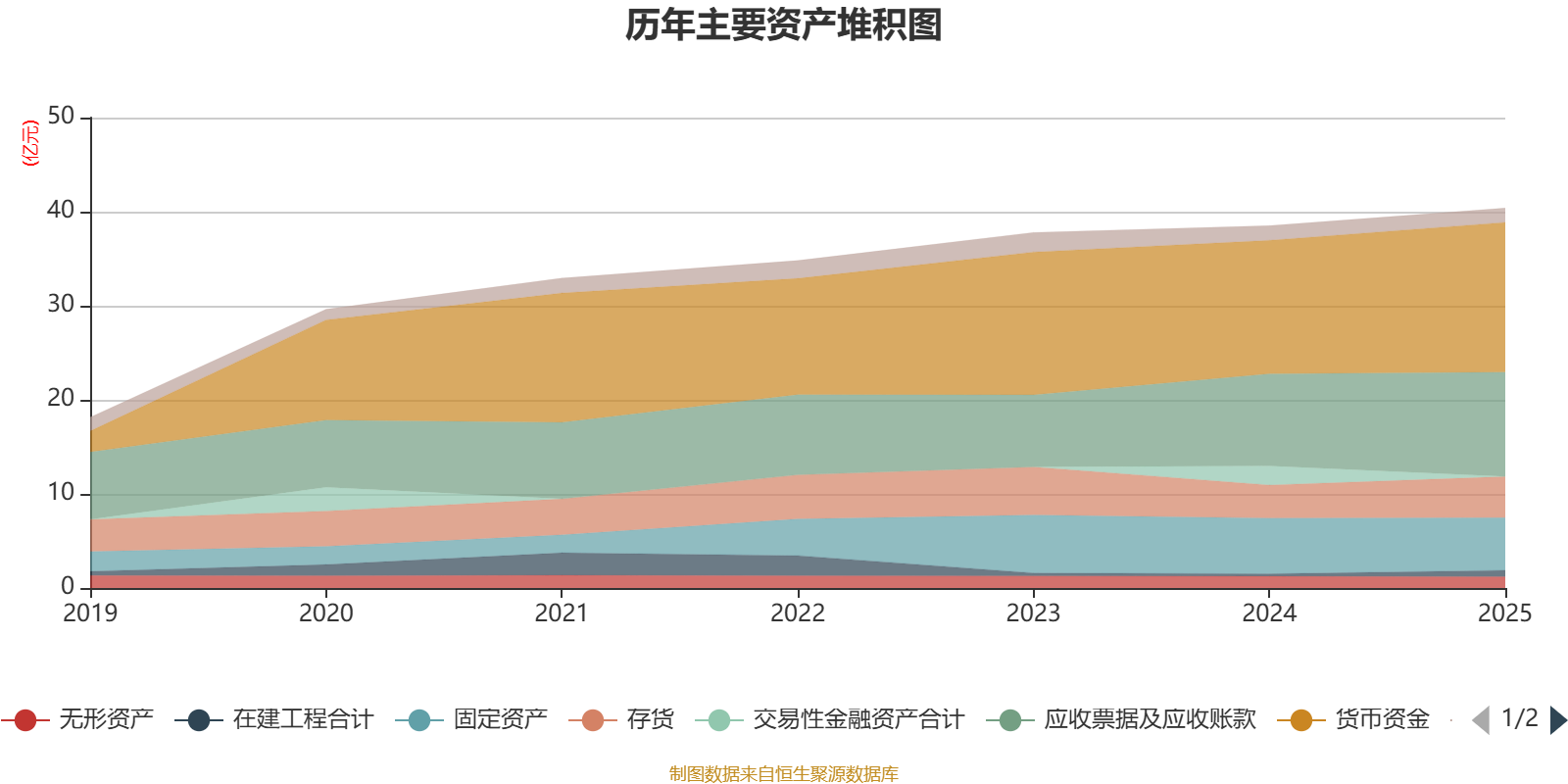 资产重大变化方面,截至2025年末,公司交易性金融资产合计较上年末减少100%,占公司总资产比重下降5.24个百分点;货币资金较上年末增加12.36%,占公司总资产比重上升2.63个百分点;应收票据及应收账款较上年末增加13.09%,占公司总资产比重上升2个百分点;存货较上年末增加24.78%,占公司总资产比重上升1.73个百分点。