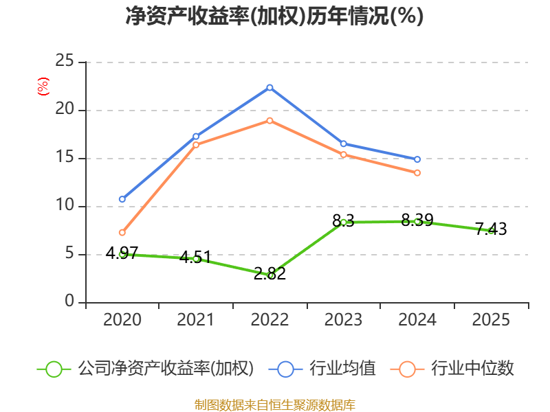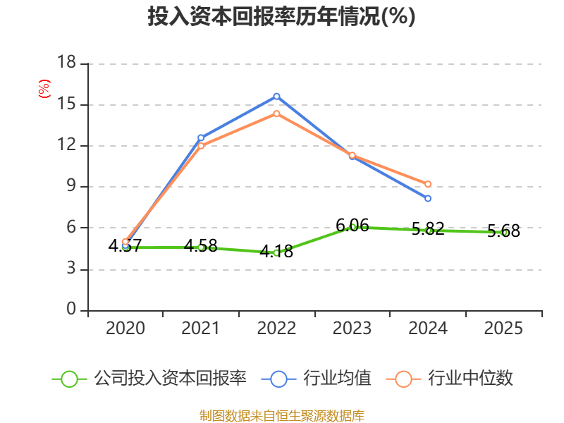数据显示,2025年公司加权平均净资产收益率为7.43%,较上年同期下降0.96个百分点。公司2025年投入资本回报率为5.68%,较上年同期下降0.14个百分点。