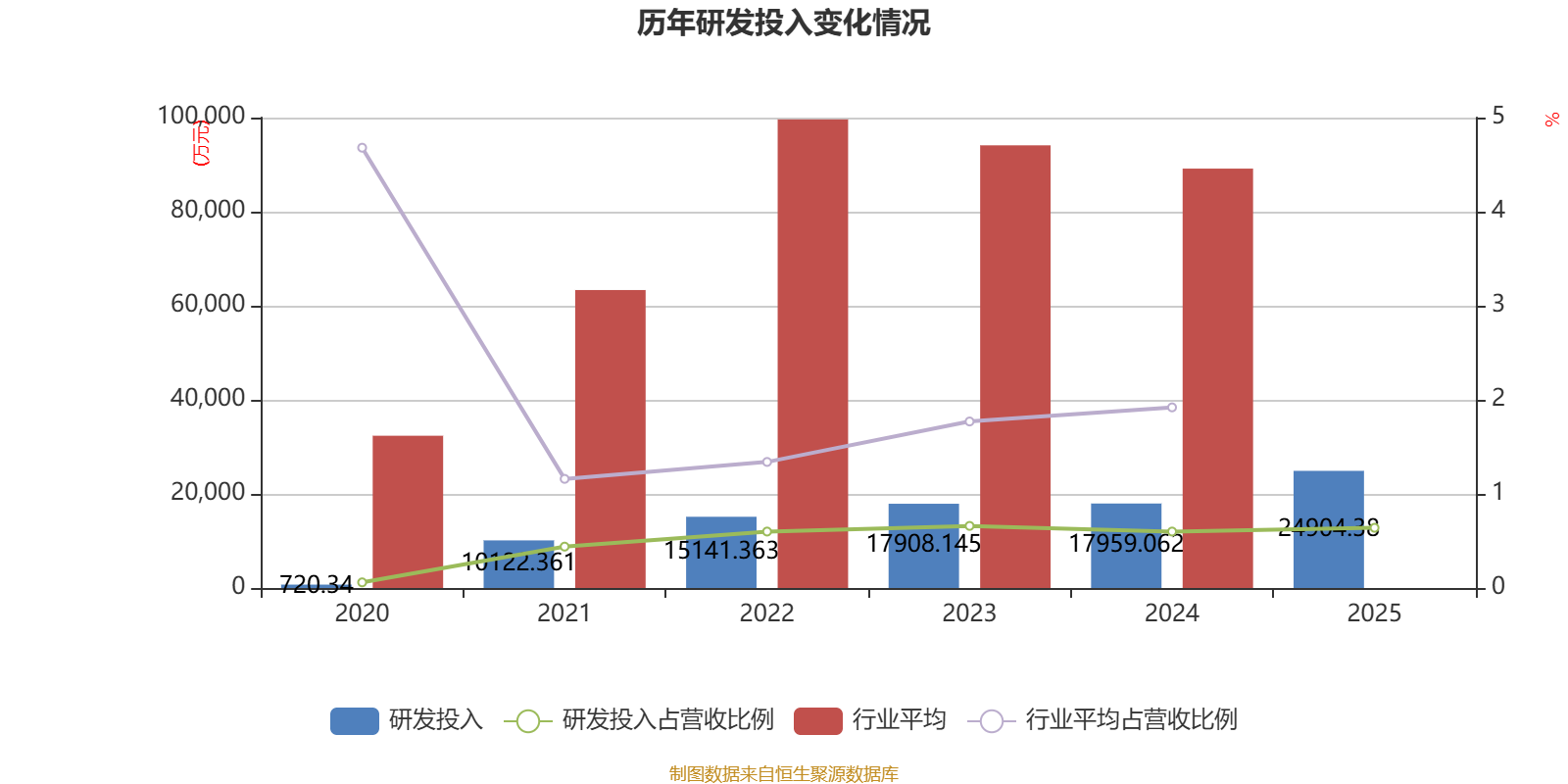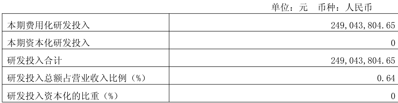 2025年全年,公司研发投入金额为2.49亿元,同比增长38.67%;研发投入占营业收入比例为0.64%,相比上年同期上升0.04个百分点。此外,公司全年研发投入资本化率为0%。