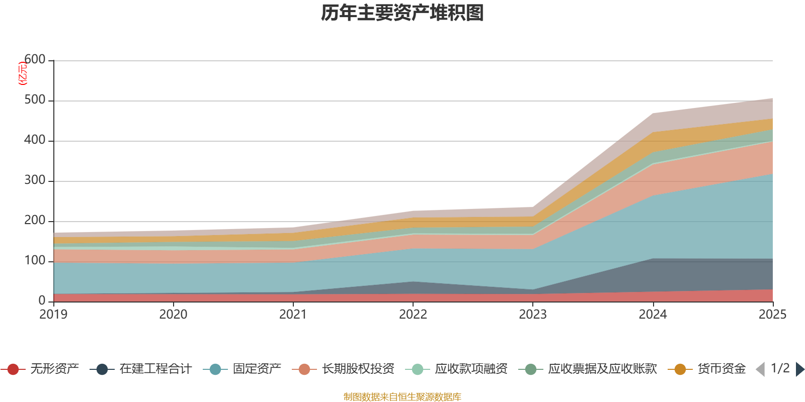 资产重大变化方面,截至2025年末,公司固定资产较上年末增加34.8%,占公司总资产比重上升8.28个百分点;货币资金较上年末减少46.34%,占公司总资产比重下降5.38个百分点;在建工程合计较上年末减少7.2%,占公司总资产比重下降2.49个百分点;其他应收款(含利息和股利)较上年末减少69.82%,占公司总资产比重下降1.26个百分点。