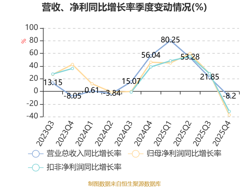 资产重大变化方面,截至2025年末,公司应收款项融资较上年末减少75.24%,占公司总资产比重下降11.11个百分点;应收票据及应收账款较上年末增加33.5%,占公司总资产比重上升10.8个百分点;其他流动资产较上年末减少72.32%,占公司总资产比重下降5.68个百分点;在建工程合计较上年末增加274.47%,占公司总资产比重上升3.49个百分点。